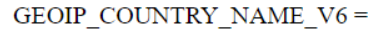 $SERVER['GEOIP_CITY_V6']; et $SERVER['GEOIP_COUNTRY_NAME_V6'];