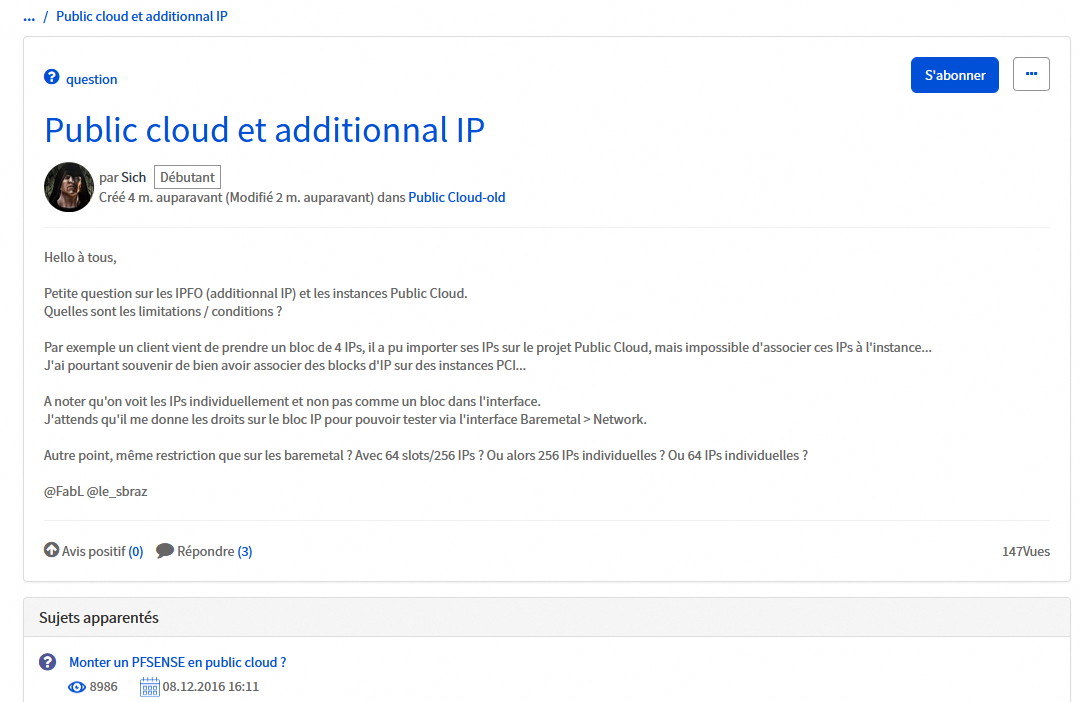 Petite question sur les IPFO (additionnal IP) et les instances Public Cloud.