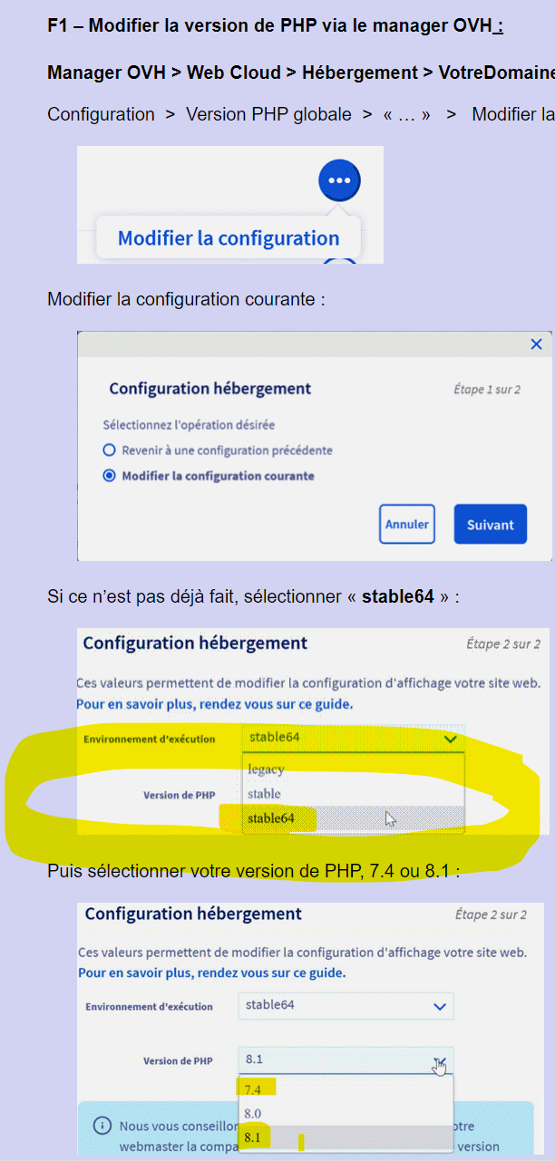 **F1 – Modifier la version de PHP via le manager OVH**