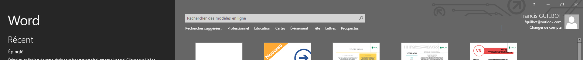 Je viens de constater une chose sur Excel ainsi que sur word, en haut a droite j'ai un compte outlook, ne serait-ce pas ça ?