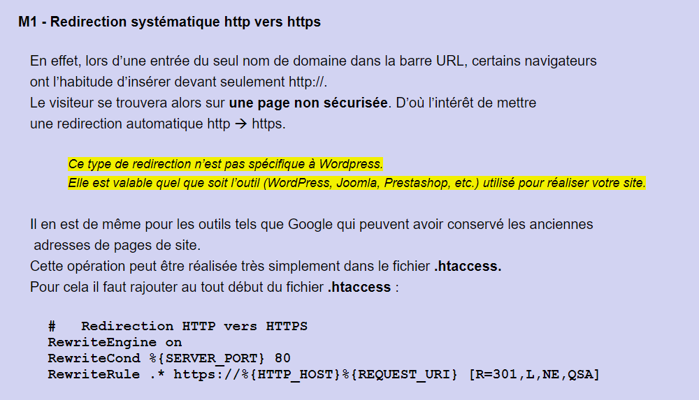 **M1 - Modification du fichier /www/.htaccess pour la redirection de http vers https**