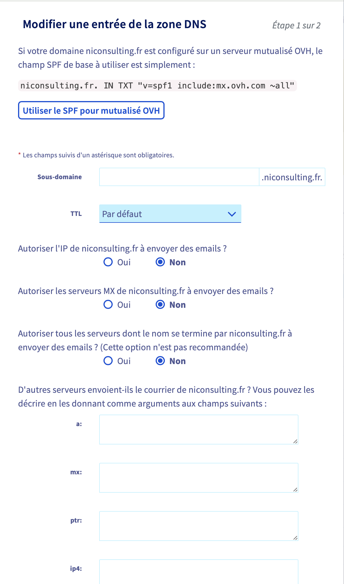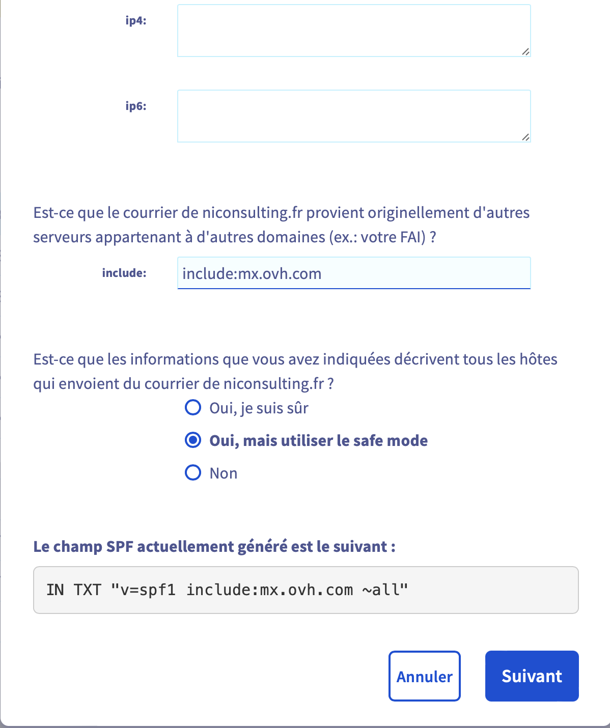 Voici la section SPF ouverte :