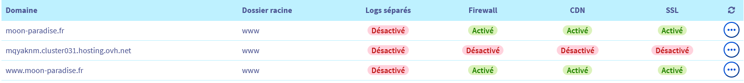 Alors le soucis c'est que je ne sais pas comment c'était mais sinon vous parler bien de la colonne multisite ? Je fait ajouter un nom de domaine/sous domaine ? Je coche activer ssl / cdn et firewall ? Voir photos ci-jointes :