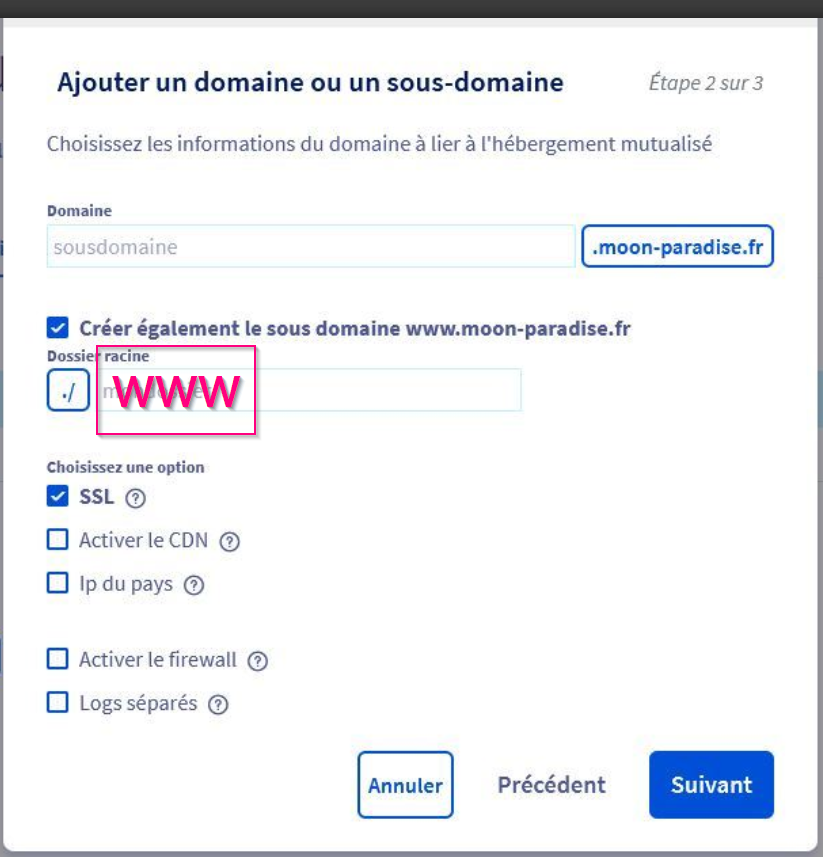 - Création de sous-domaine