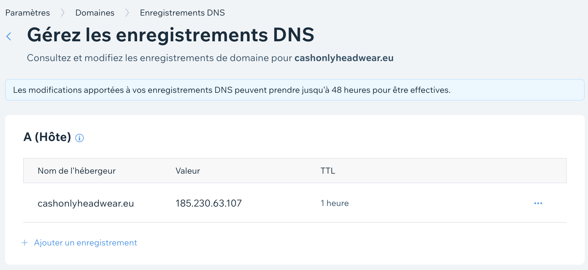 Serveurs DNS => chez WIX