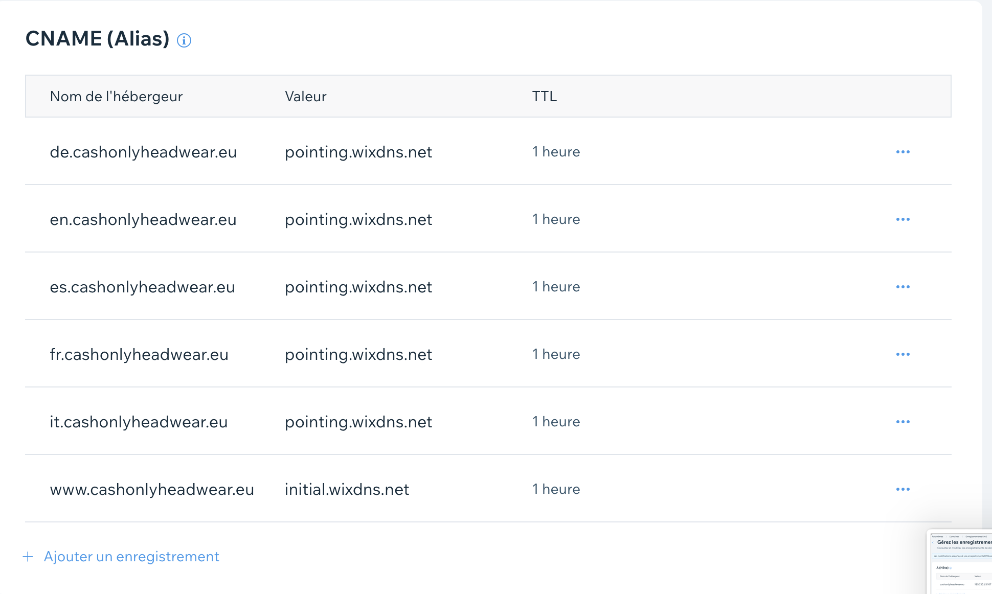 A noter bis: je viens de réinitialiser les A (hote) coté Wix qui avait 3 adresses IP pour ne laisser que celle de base comme expliqué dans la réinitialisation de A name et C name par Wix.