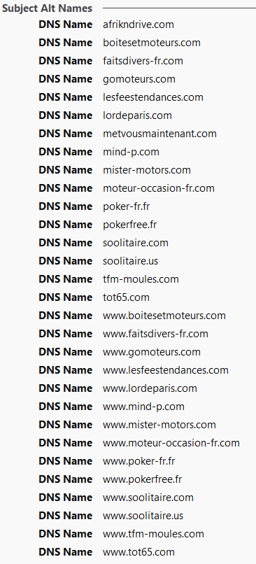 Peut-être y a-t-il une limite au nombre de domaines qu'un iPhone veut bien voir dans un certificat ?