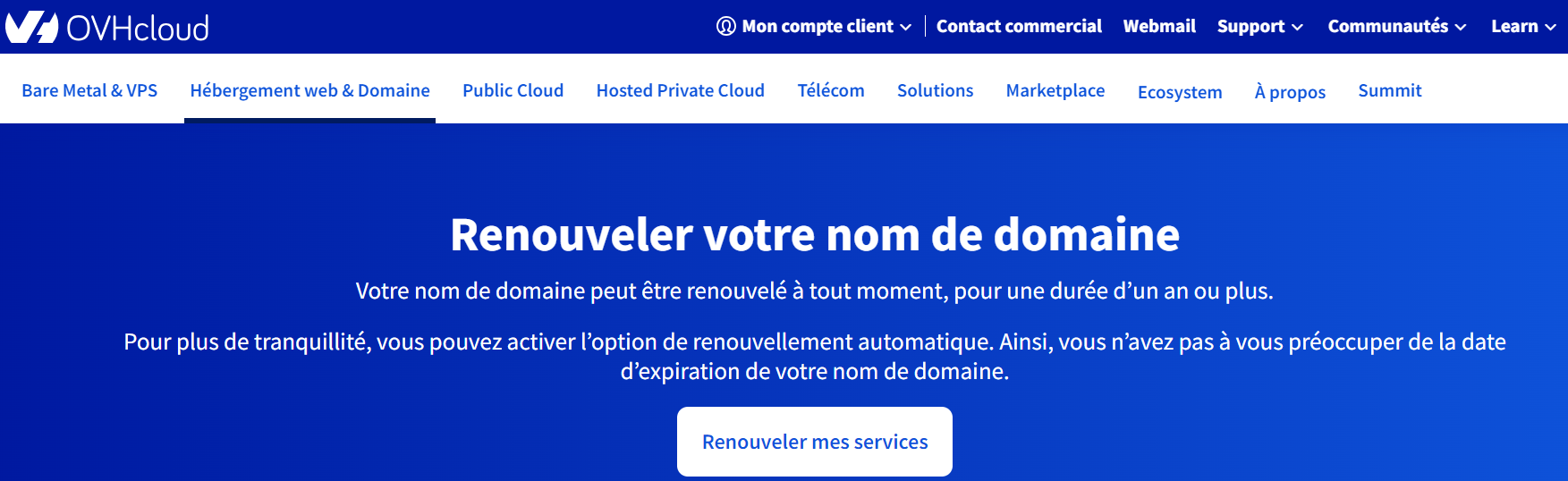 Vu à l'instant sur : https://www.ovhcloud.com/fr/domains/domain-renew/ :