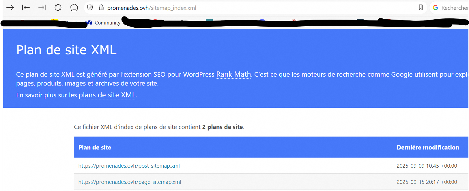 J'ai un site sur le CMS WordPress et j'ai créé un sitemap avec l'extension Yoast SEO pour pouvoir faire indexer mon site.