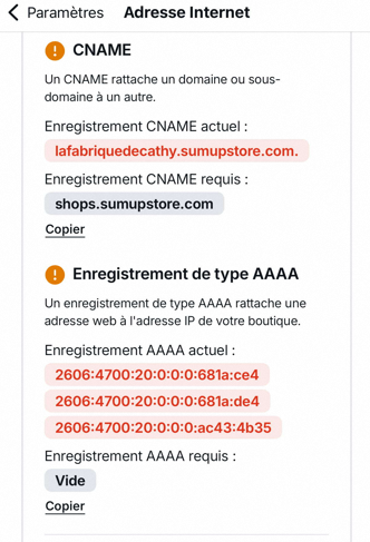 Chez Sumup vous devez aussi déclarer vos adresses avec "www"