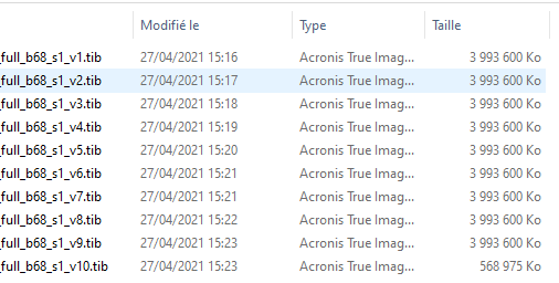 Configure Acronis pour avoir des fichiers de 4 Go Maxi.