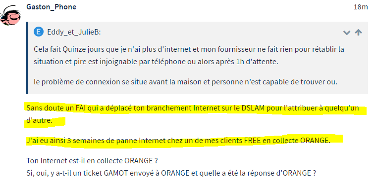 J'ai eu ainsi 3 semaines de panne Internet chez un de mes clients FREE en collecte ORANGE.