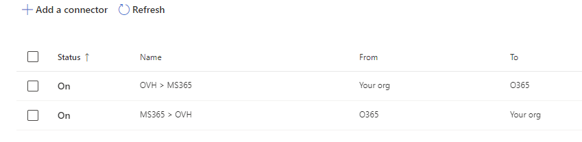 Voici la conf des connecteurs côté O365: