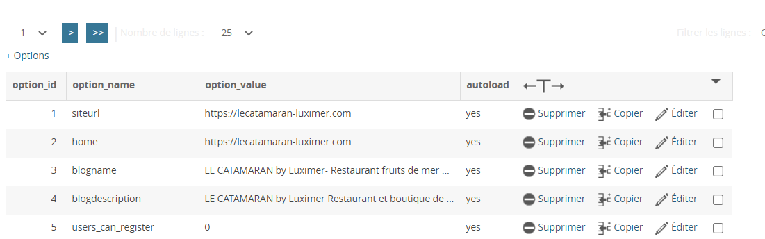 Alors, dans ma base de donnée je n'ai pas de table s'appelant wp_options: