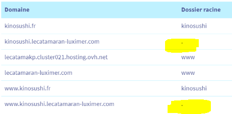 Et second site créé en sous domaine : kinosuhi.1luximer.comluximer.com que j'ai réussi à transformer en kinosushi.fr grâce à vos derniers conseils.