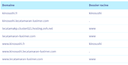 Pour faire pointer kinosushi.1luximer.comluximer.com vers un autre dossier et ainsi éviter que **DEUX** domaines pointent sur le même site.