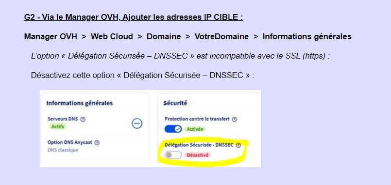 Je suis en train de lire votre tuto. Comme ça à chaud, ça pourrait être intéressant pour les novices comme moi d'avoir une petite explication de ce qu'est "Délégation Sécurisée-DNSSEC" et pourquoi est-ce incompatible avec le SSL.