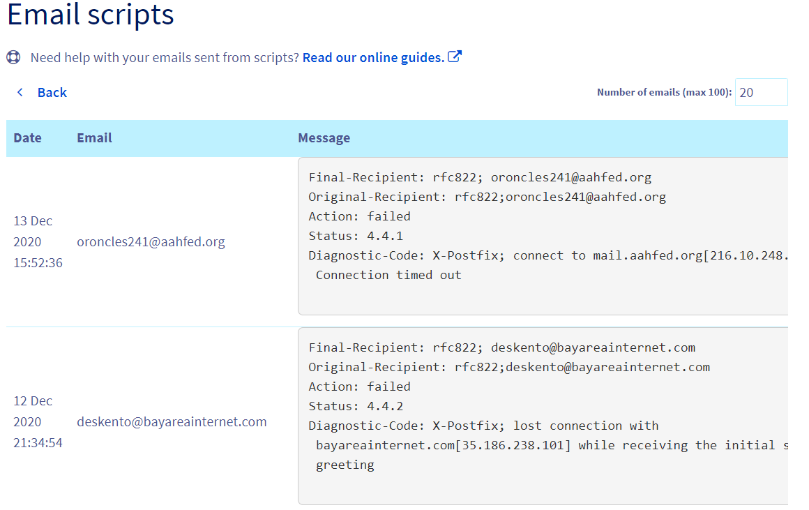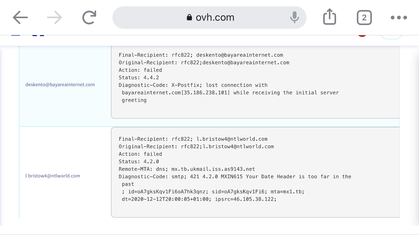 J’ai regardé ce matin le log des e-mails en erreur, je ne comprends rien, mais toi, tu comprends parfaitement de quoi ce logs parle, donc je me permets de te le montrer. Merci bien pour ton aide.