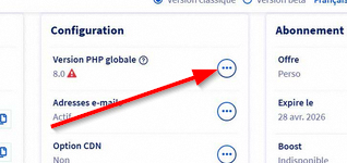 et on ajoute un point 8a: vous remettez la configuration PHP avec une version récente, par exemple 8.3 ou 8.4, au lieu de 7.4
