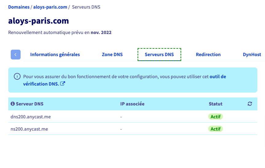 **Manager OVH > Web Cloud > Domaine > VotreDomaine > Serveurs DNS**