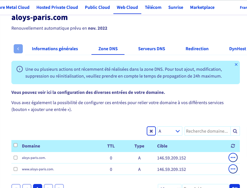 **Manager OVH > Web Cloud > Domaine > VotreDomaine > Zone DNS**