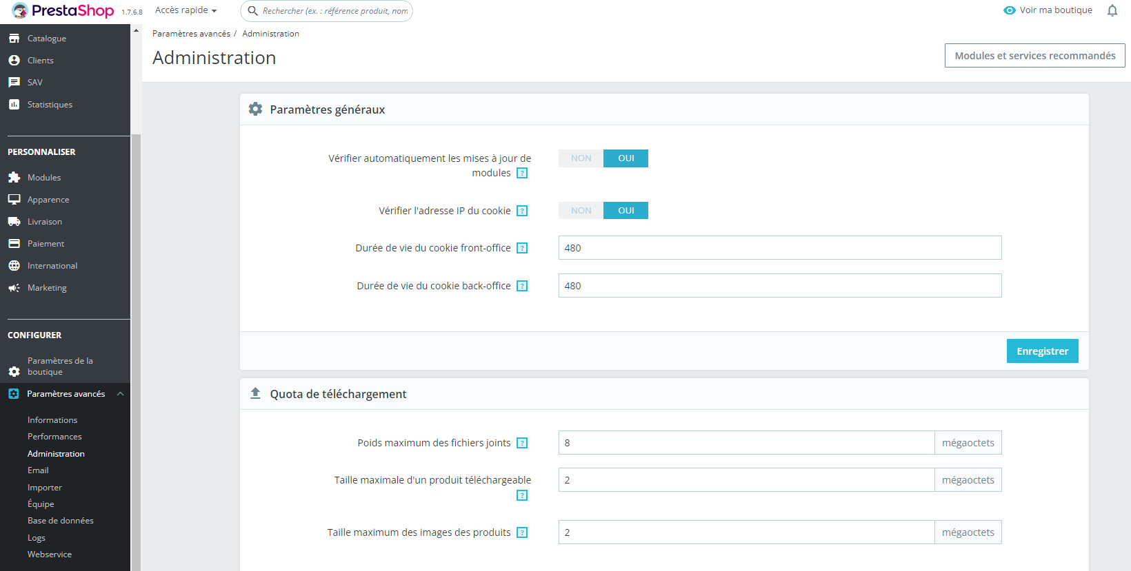 Voici ce que j'ai dans parametres generaux de l'administrattion du module.