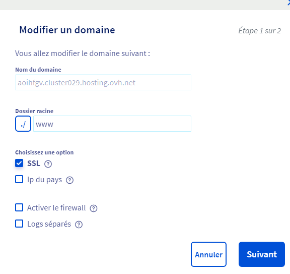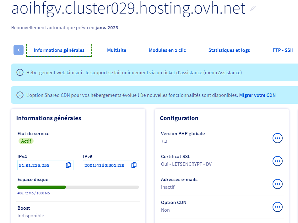 L'association s'est correctement passée dans OVH. J'ai activé le SSL au niveau Informations Générales.