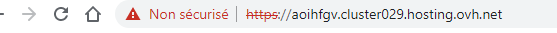 Je remarque en même temps que malgré le certificat SSL, l'url **http://aoihfgv.cluster029.hosting.ovh.net/** n'est pas sécurisée.