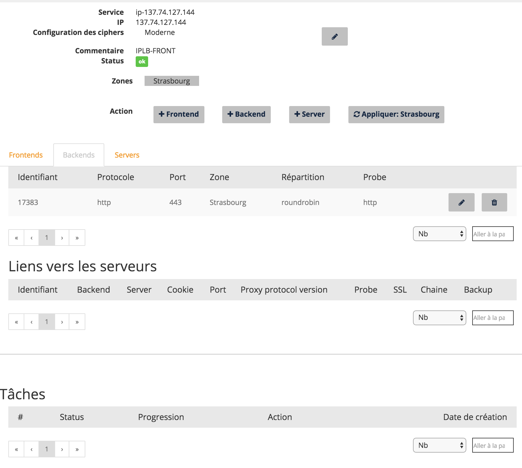 - sur le guide (https://docs.ovh.com/fr/fr/cloud/iplb/configure-iplb/">https://docs.ovh.com/fr/fr/cloud/iplb/configure-iplb/), on commence par ajouter un font-end, mais ca n'est pas possible si aucun backend est mis en place au préalable (le champ backend par defaut lors de la création du front-end est obligatoire contrairement à ce qui est annoncé).