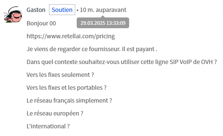 Je suis gérant d'une société de location de véhicules sur plateforme. Je souhaite utiliser cette ligne SIP OVH comme numéro de Service Client automatisé pour mes locataires.