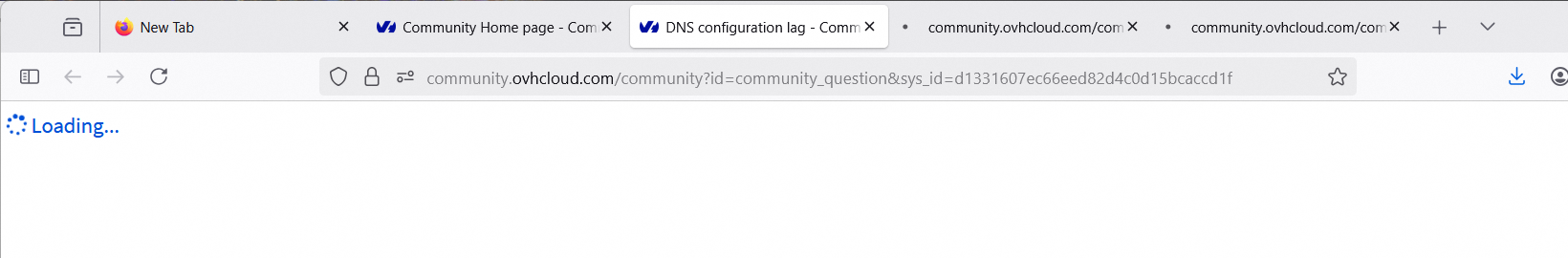 1 minute après avoir ouvert 3 onglets, toujours aucune réponse du serveur.