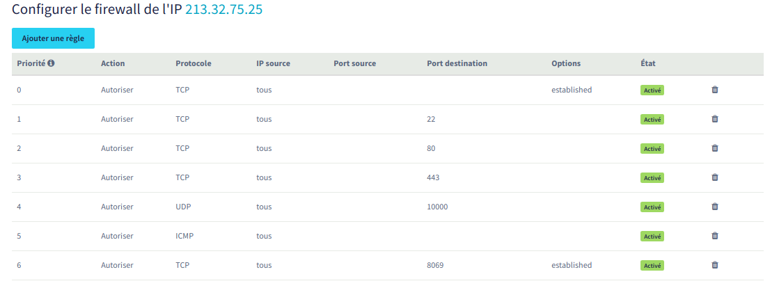 Mois ce que j'ai fait jusqu’à présent est de faire le config du firewall depuis l'interface de ovh mais rien