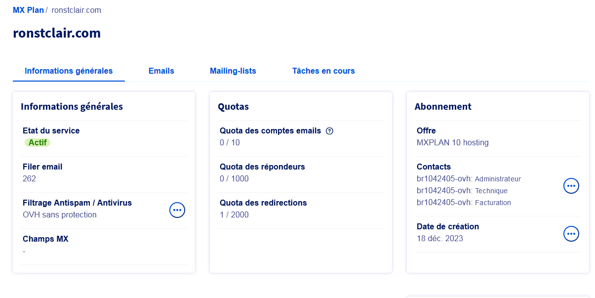 - Mon hébergement : OVHcloud MX Plan