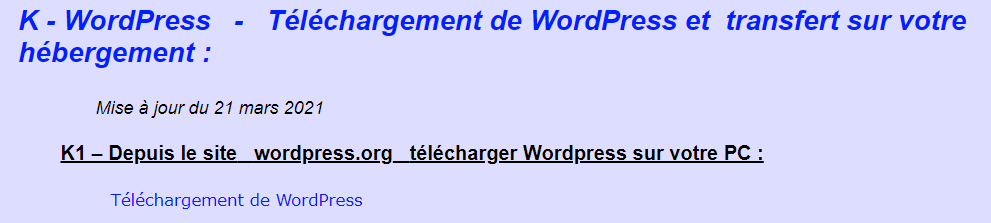 * Télécharger la dernière version de WordPress : https://fr.wordpress.org/download/
