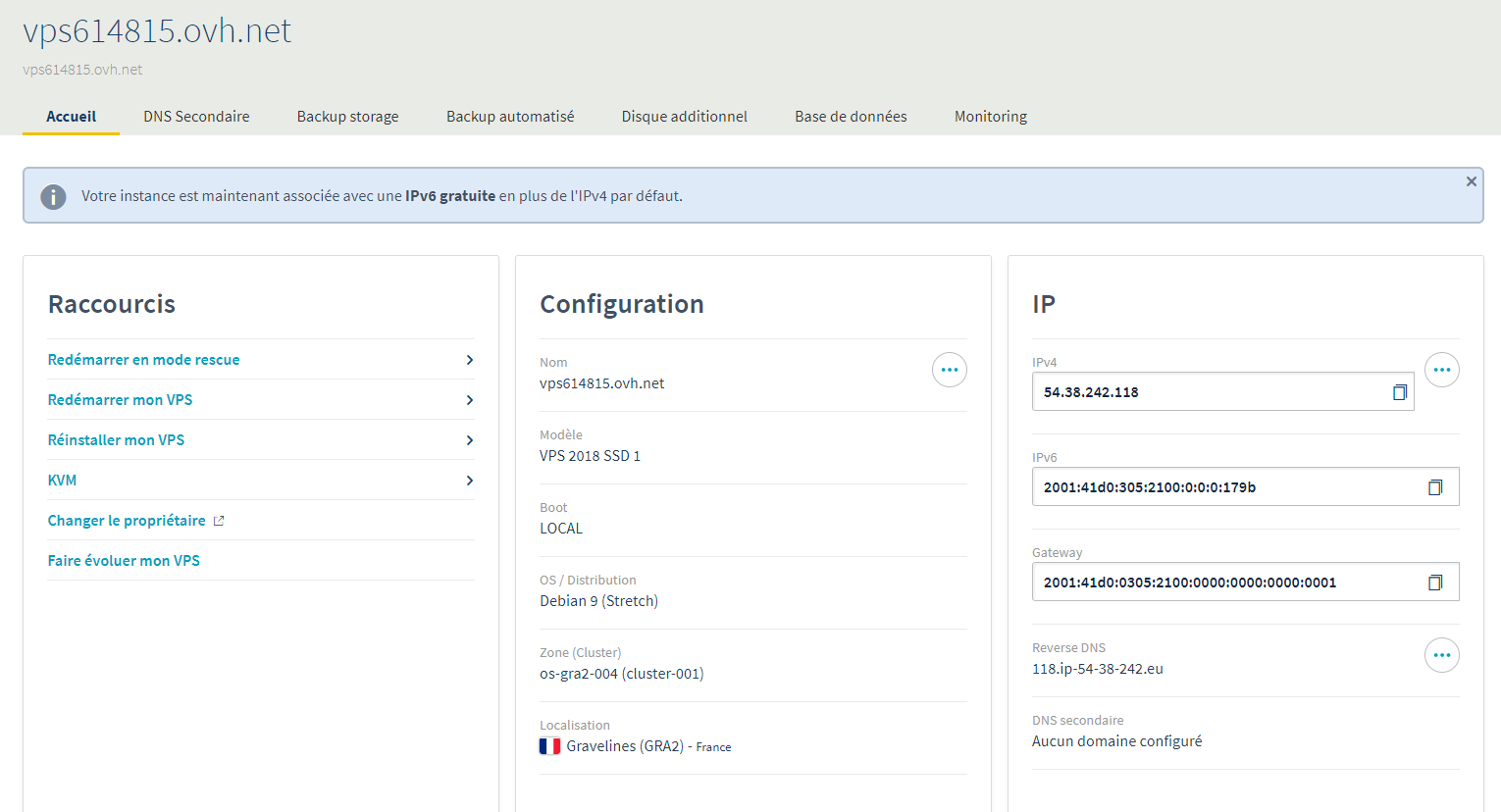 Non, tu n'as plus rien à faire dans l'interface OVH, tout se passe sur le serveur.