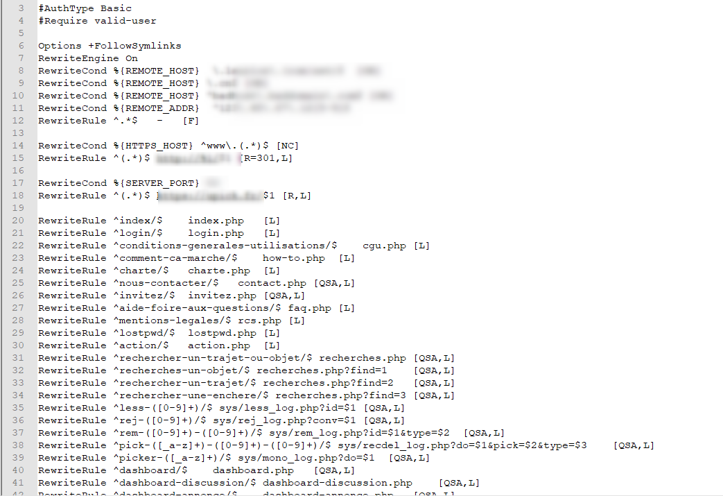 dans ton cas, tu nous montres une image inexploitable de ton .htacces en floutant des infos sans intérêt.