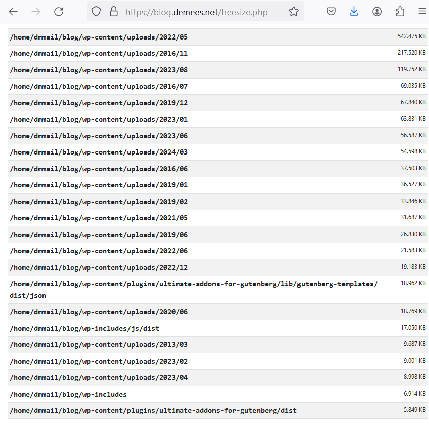 Le script treesize tourne sur le serveur, sans besoin de télécharger votre site chez vous.