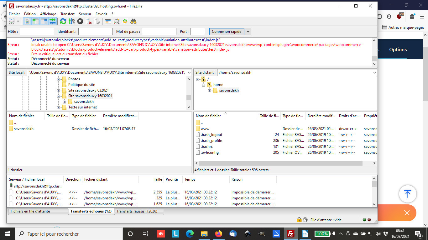 Et là d'après vos capture vous cous connectez en FTP et non SFTP, il y a certes que le S en plus mais cela change tout niveau protocol.
