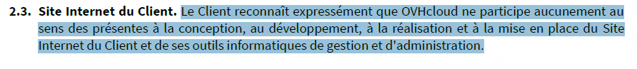 Que les choses soient claires: c'est le moment de relire votre contrat https://contract.eu.ovhapis.com/1.0/pdf/contrat_partWeb-fr.pdf
