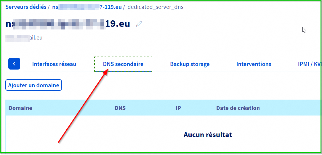 Dans l'interface OVH Cloud je ne vois pas dns secondaire.