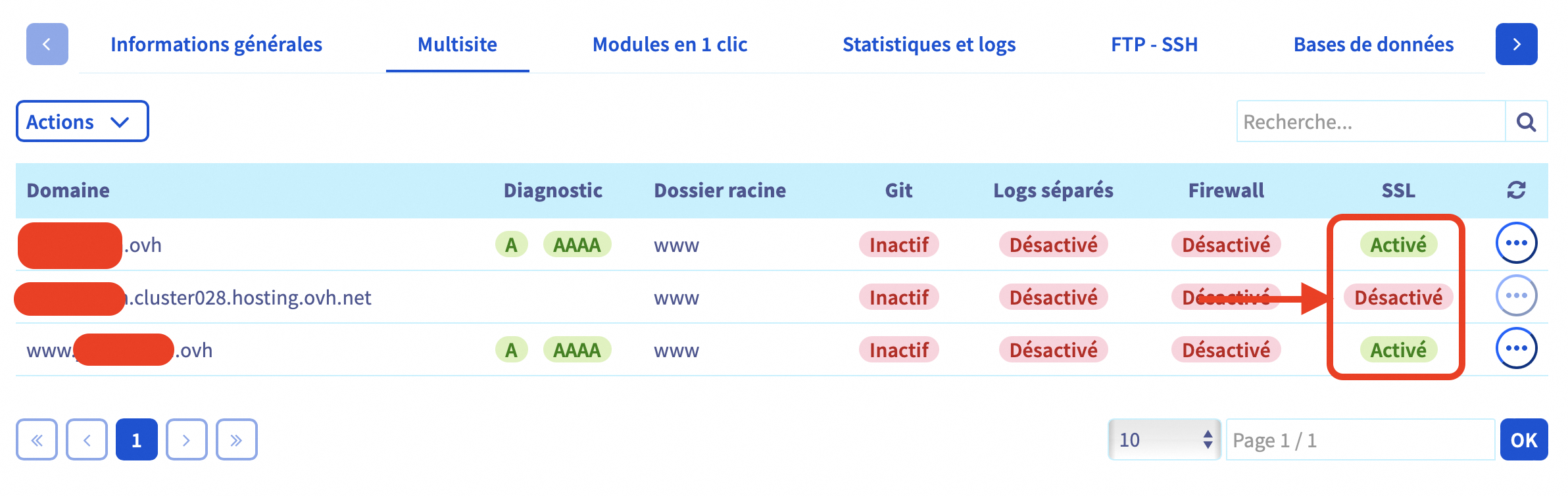 On a demandé de la rétablir, mais la réponse d'OVH a été négative.