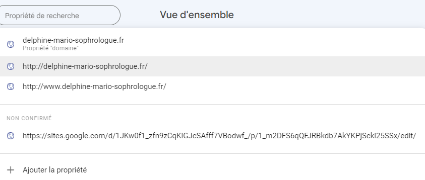 cependant je ne comprends toujours pas "votre nom de domaine (sans www) n'est toujours pas reconnu par Google, il n'y a pas non plus de certificat SSL valable." car delphine-mario-sophrologue.fr sans le www apparait bien en haut de liste et en dessous il y a bien la mention propriété domaine, ca me laisse penser (peut être à tors du coup) que cela est bien reconnu par google.