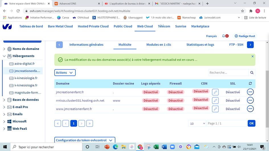 Le nom de domaine est jmcreationenfant.fr (pris sur namecheap)