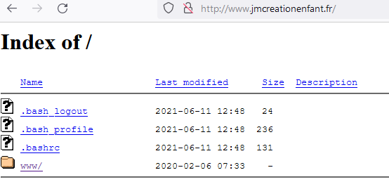 Ceci explique que lorsqu’on visite votre site, on se retrouve au dossier supérieur.