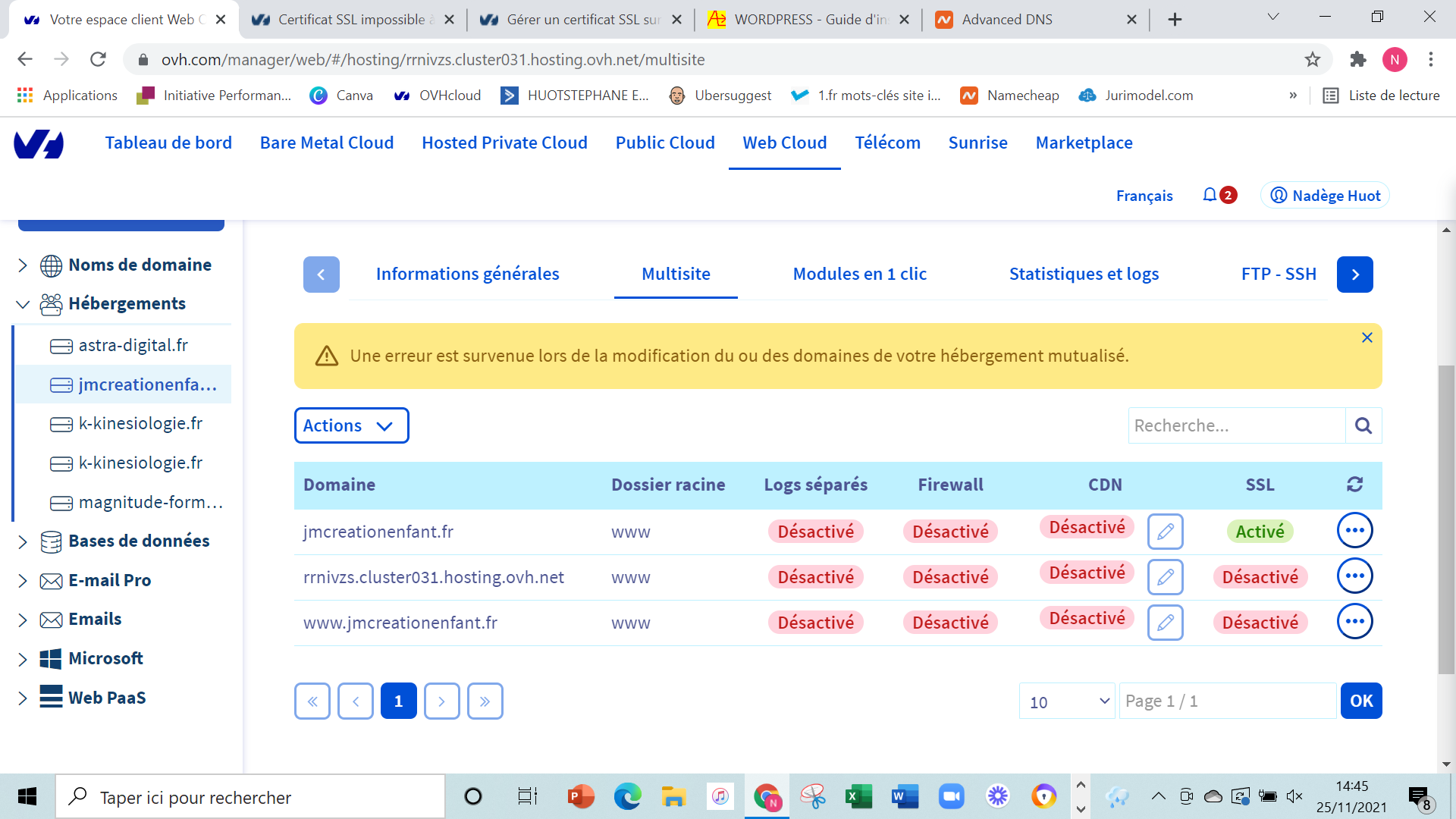 - Problème SSL/multisite "Une erreur est survenue lors de la modification du ou des domai