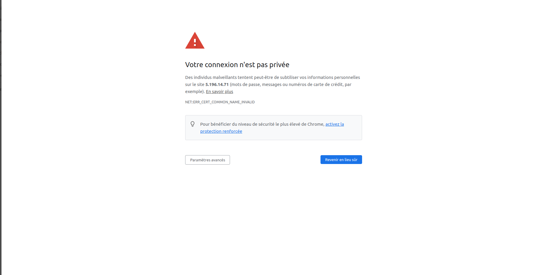 C'est normal que vous ayez une erreur, le certificat est pour 1avocat.comavocat.com et non pour 5.196.14.71 !