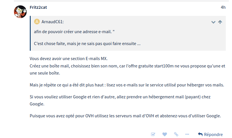 Par contre quand j'envoie un mail sur ce mail nouvellement créé je ne les reçois pas ! C'est problématique ...
