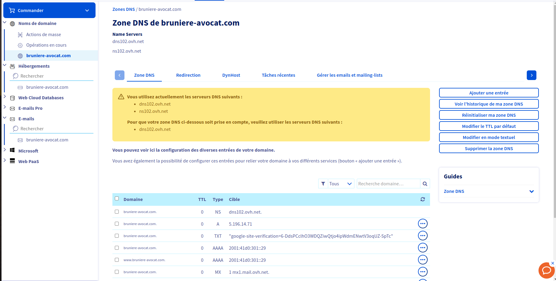 "par contre il manque un enregistrement NS avec la valeur "ns102.ovh.net." (avec le point à la fin)