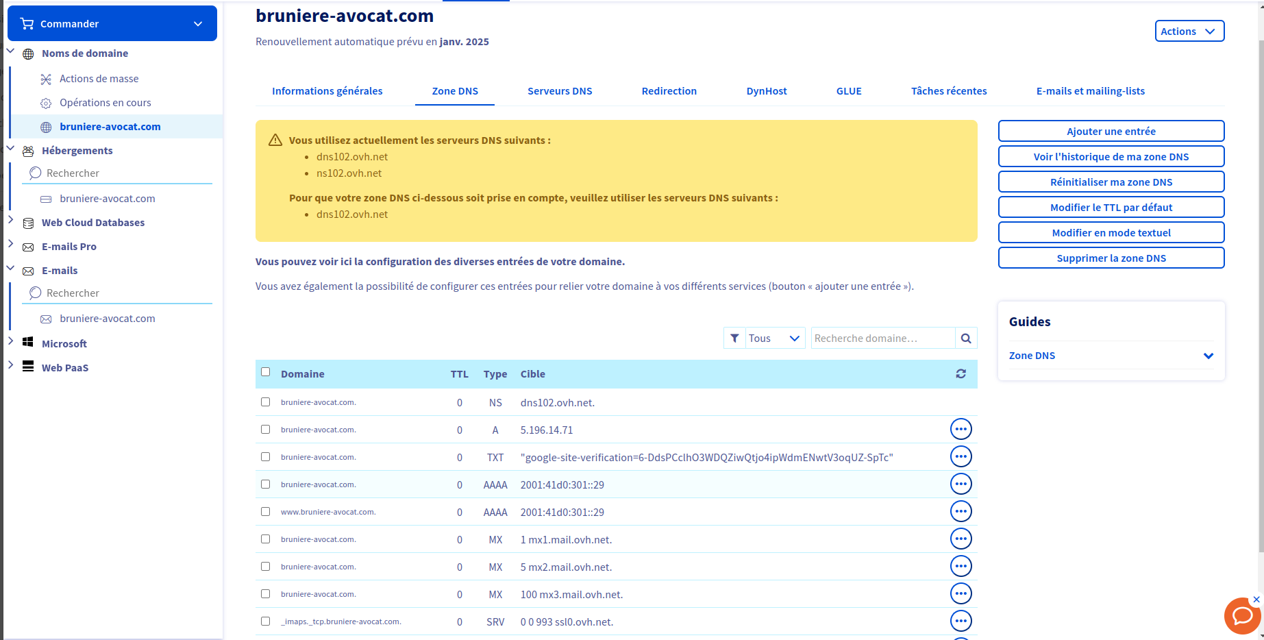1 × bruniere-avocat.com - Zone DNS