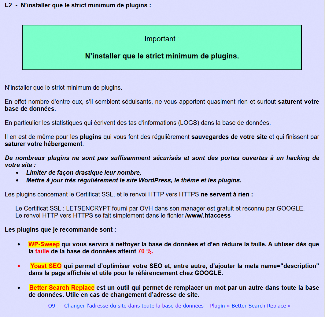 Voir dans mon guide le paragraphe : L2 - N’installer que le strict minimum de plugins